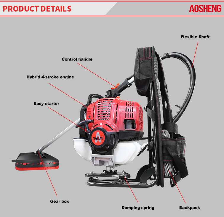 고성능 4행정 엔진, 변위는 38CC입니다. 열린 황무지에서의 전문적인 사용 튜브 크기 26mm*1.5mm, 강도 유연한 샤프트. 절단 폭은 420mm입니다. 수명은 150시간 이상입니다. 새로운 디자인 가이드 표지.