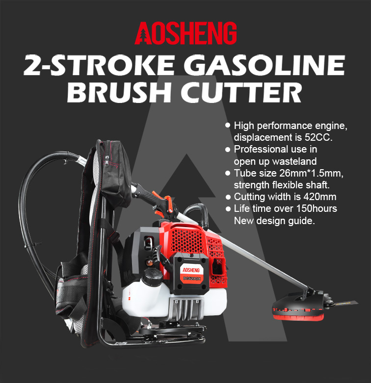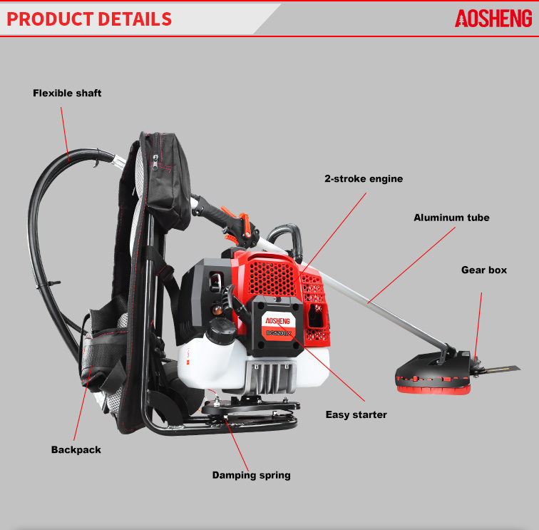 고성능 4행정 엔진, 변위는 38CC입니다. 열린 황무지에서의 전문적인 사용 튜브 크기 26mm*1.5mm, 강도 유연한 샤프트. 절단 폭은 420mm입니다. 수명은 150시간 이상입니다. 새로운 디자인 가이드 표지.