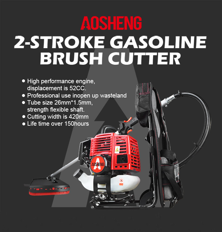 고성능 엔진, 배기량은 33CC입니다. 전문적인 사용은 황무지를 열어줍니다 튜브 크기 26mm*1.5mm, 강도 유연한 샤프트. 절단 폭은 420mm입니다. 150시간 이상의 수명