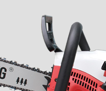 03브레이크 보호 장치브레이크 반응이 민감하여 작동 안전성이 향상됩니다. 전면 핸들바와 후면 핸들바가 일체형으로 제작되어 심플하고 견고한 구조입니다. 장치를 누르면 체인톱이 정지됩니다. | |